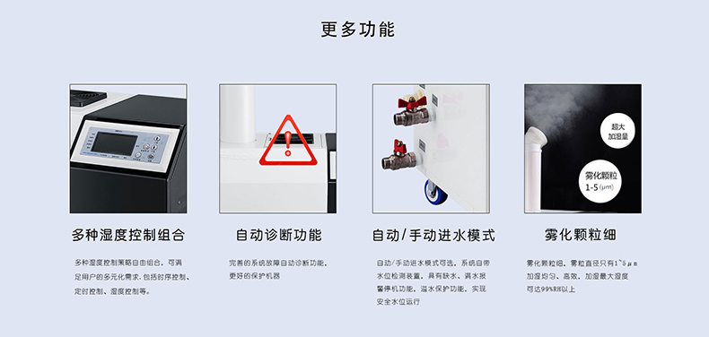 超声波加湿器控制方式灵活、方便,湿度全自动控制。